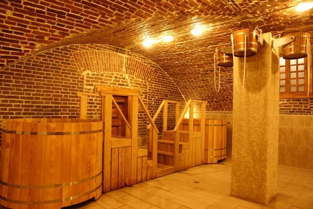 Муниципальная баня включает в себя отдельные мужские и женские залы. Они оснащены русскими парными из натурального дерева, душевыми кабинками, поливочными ведрами, специальными деревянными купелями и удобными скамейками.